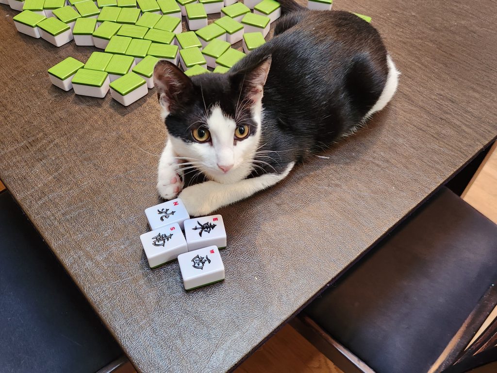 Of course, one other thing came out of The Duchess’s Mahjong Mania: Our cat Pinfu Riichi Mahjong Somers, who was named after the game, as one does. Plus, I can do some of the Magic Mahjong Math, which is more than I could ever say about Regular Non-Magic Math.